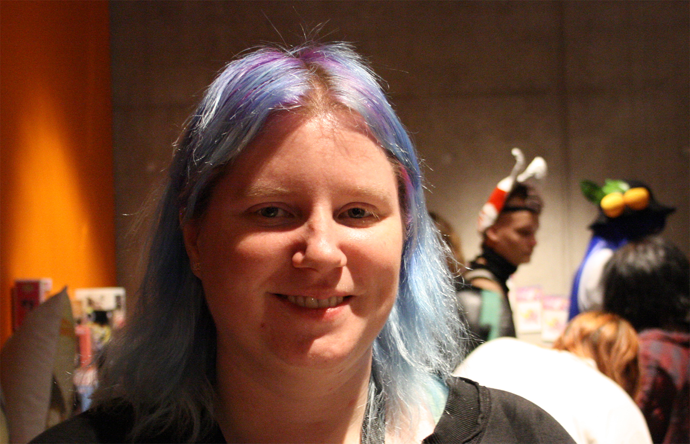 I montern bredvid, hos Adephi’s Collectibles, stod ytterligare en blåhårig tjej som var väldigt nöjd med sin hårfärg: