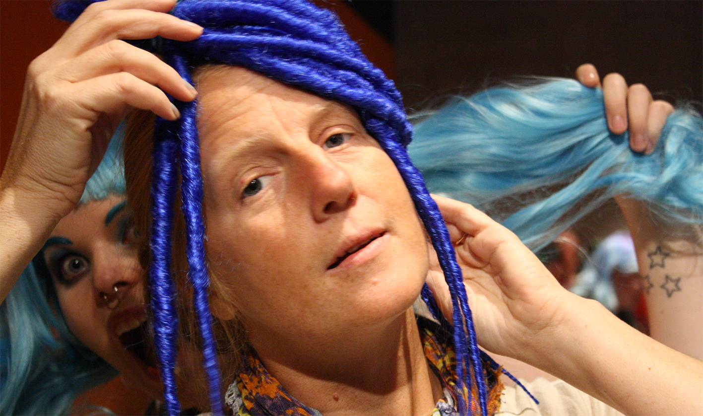 I min jakt efter blått tog jag mig till ConFusion, Västsveriges största event för östasiatisk populärkultur, som just nu pågår på Världskulturmuseet i Göteborg. Här fann jag Psychadelica Hairdesign och två tjejer med blått hår.