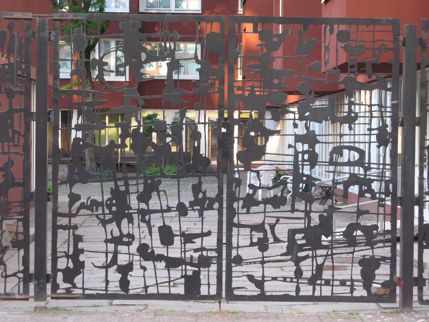 Port i svartmålat järn. Karl Johans gatan 51 Göteborg. Foto: N. Nilsson. Jag har inte lyckats reda ut vem som är konstnär till verket.