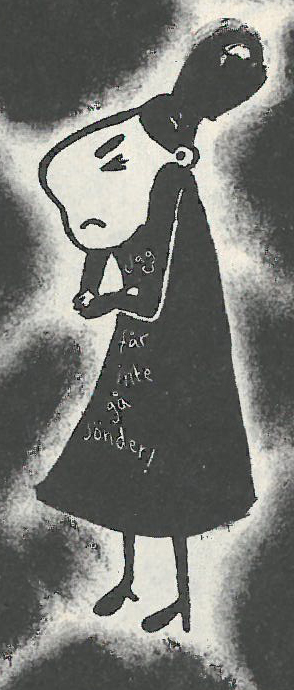 I grafik och serier är svart vanligt förekommande. Svartvita serier är effektfulla då motivet hamnar i fokus; där finns ingen färg som bidrar till eller förstärker bilden, där finns inte heller någon färg som konkurrerar ut budskapet. Teckningarna, linjerna och tonerna framträder med naken tydlighet. När det gäller svartsjuka tycker jag den fångas väl här. Fröken livrädd vill inte gå sönder. Allt blir svart omkring henne och hon har svårt att se ljuset i tillvaron.