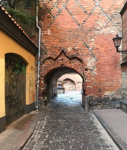 Frauke framför dörren, som nu är betydligt grönare. Skuggan från staketet har fortfarande samma svalt turkosa kulör som i föregående bild. Dörren och skuggan är här olika i kulör. Foto: Otto Vilhelmsson