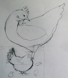 2. I planteringen kommer det att finnas ”surpriser”, något som roar en flanerande publik. Jag har skissat på olika slags fåglar, både flygande och stillastående, pickande frön.