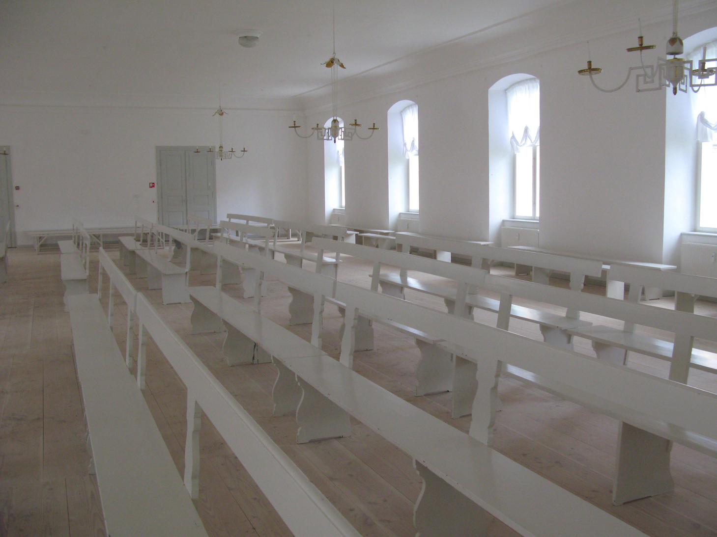 Kyrkosal, Christiansfeldt (72)Fig. 3. Kyrkorummet i Brødrehuset, Christiansfeldt, Danmark. Foto: N. Nilsson.