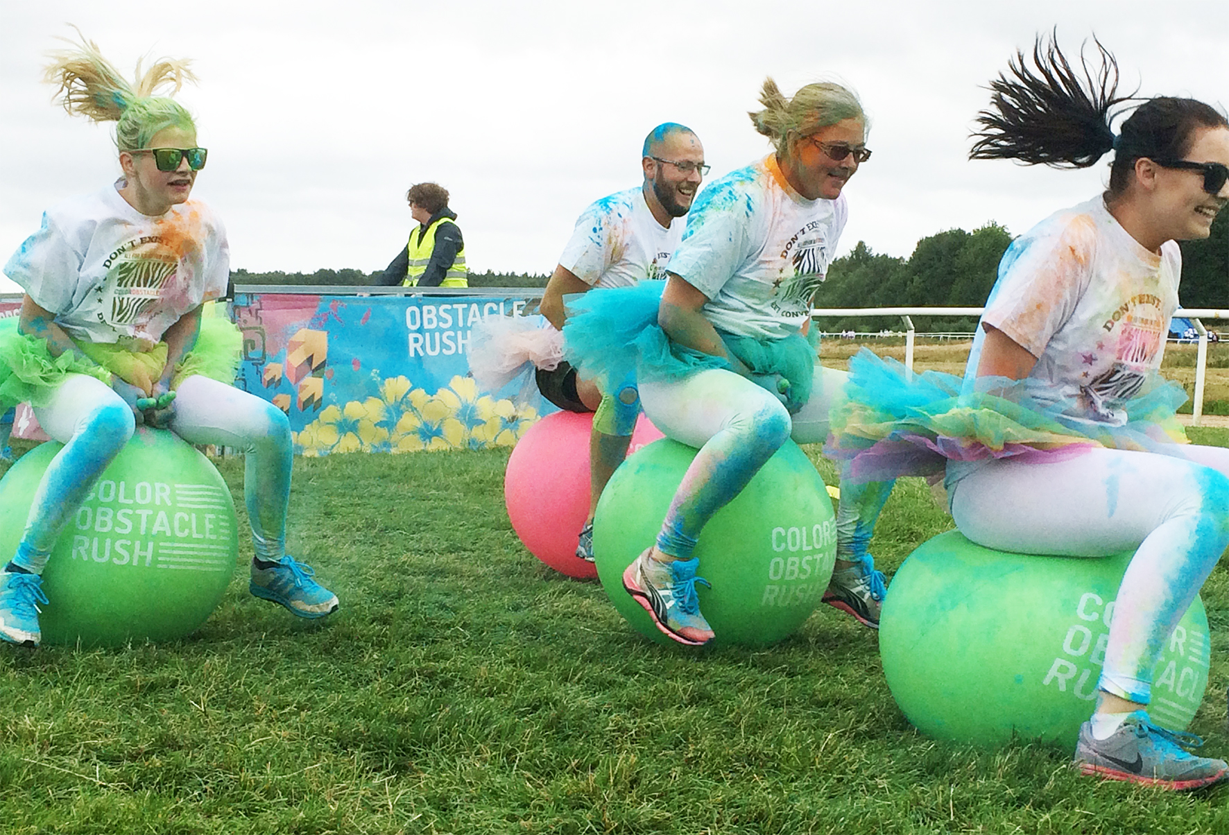 Pingisbollar i olika kulörer på duk i Hotell Järvsöbaden.