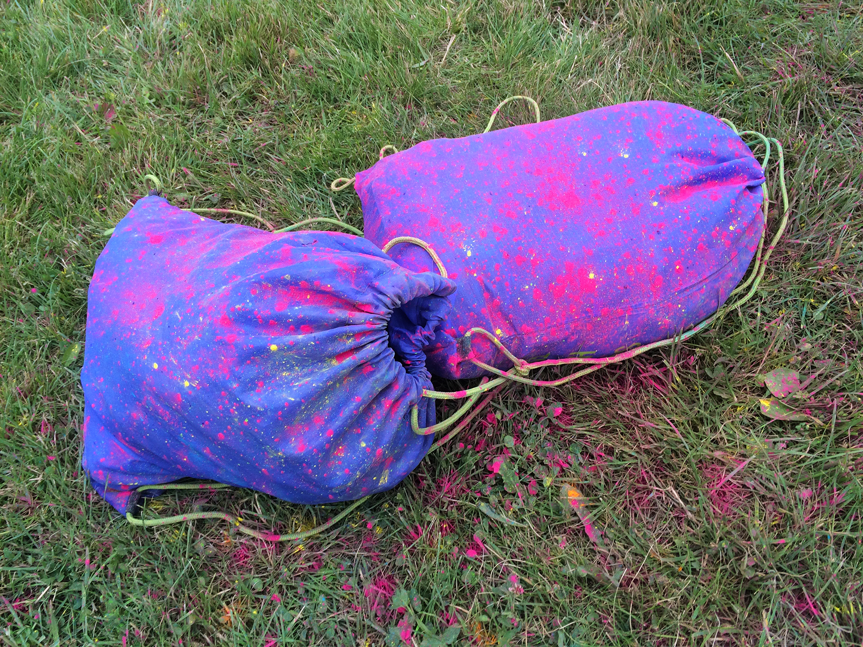 I det första färgschemat är fördelningen av bollarnas kulörer lite spretigt (tv). Jag inser att två av bollarna jag har fotograferat är från en egen sändning, den orange och den mest intensivt gröna. Tar vi bort de två tidigare bollarnas kulörer (th) fördelas de kvarvarande mer symmetriskt. Såhär: