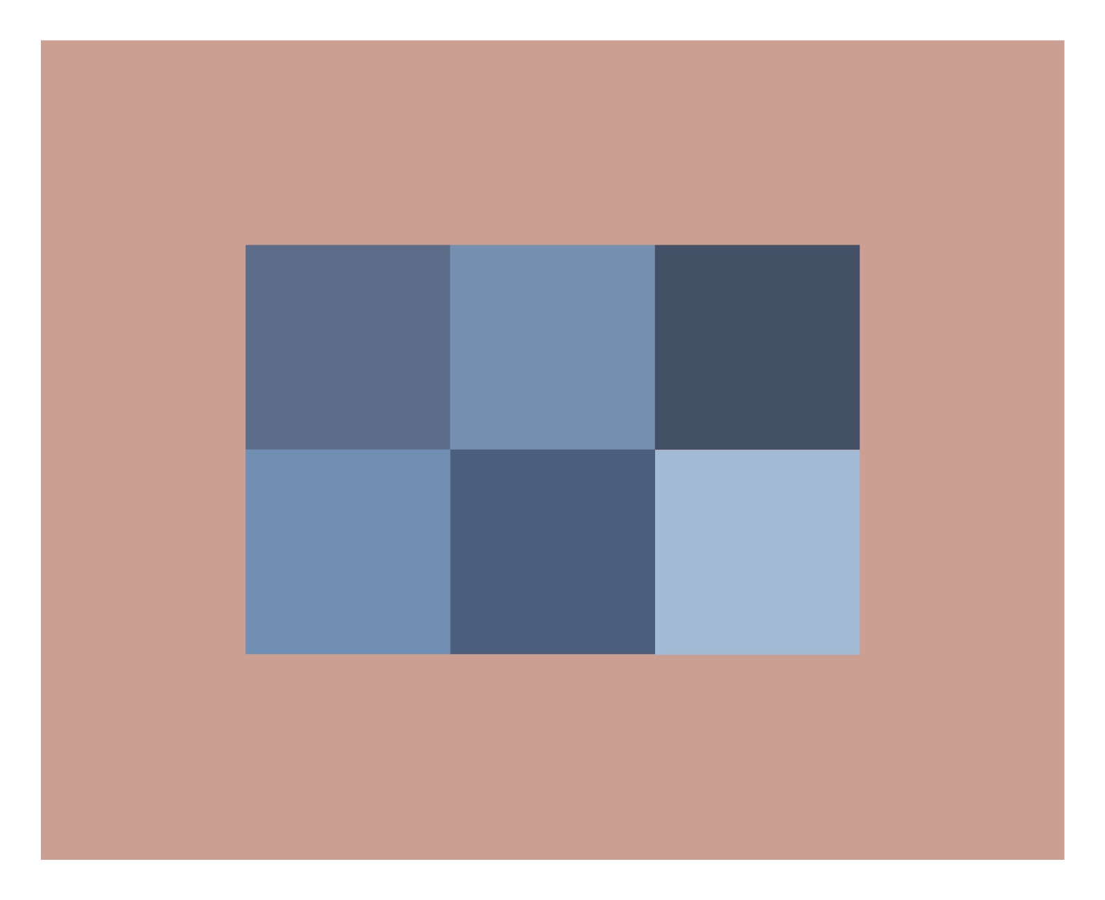 Vi ser också att de grå som är mer ljushetslika påverkas mycket av omfärgen. Det är tom svårt att tro att det är samma grå i den andra lodräta raden. Den ljusa grå och den mörka grå påverkas inte alls lika mycket av omfärgen.