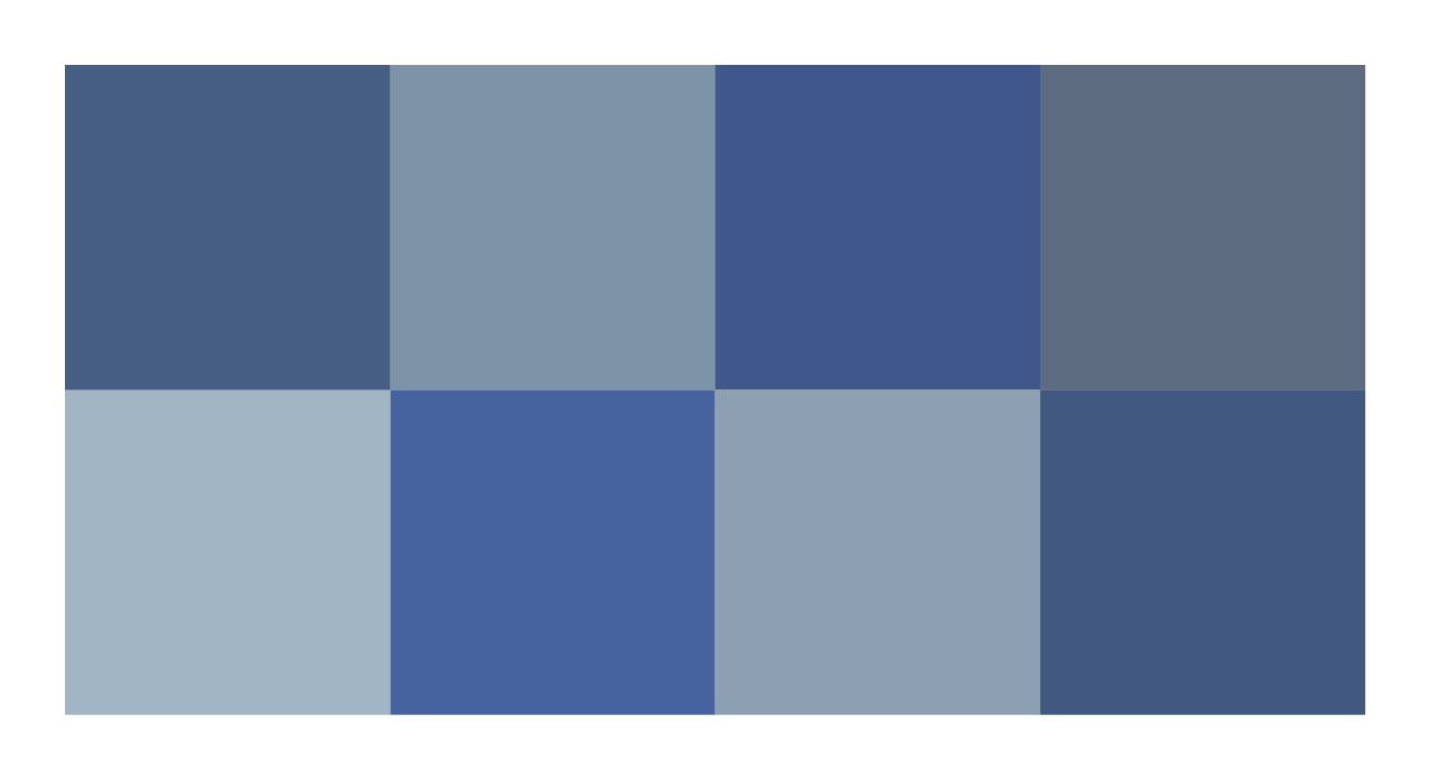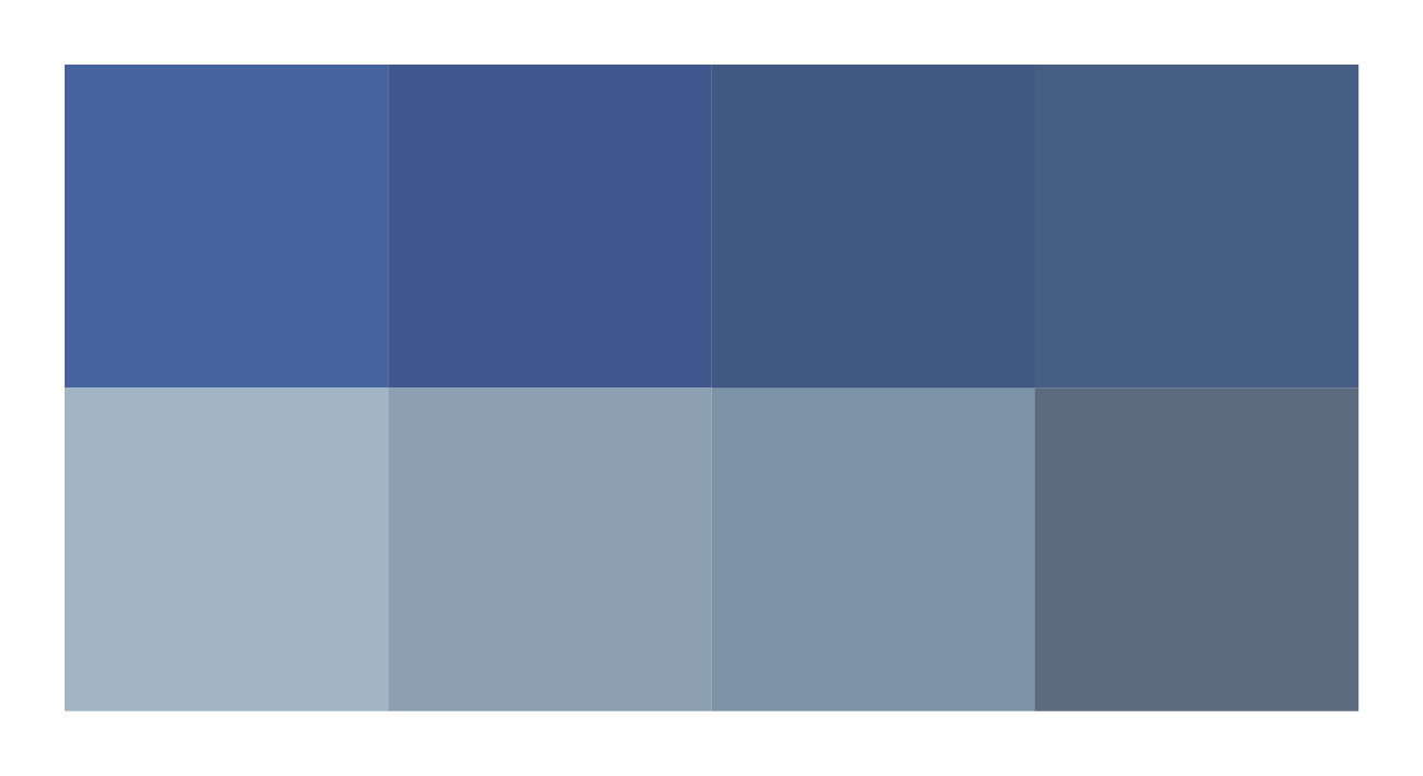 Color palettes dominated by these hues work well for projects that are aimed at a sophisticated audience or when the content should invoke calm and peaceful feelings.