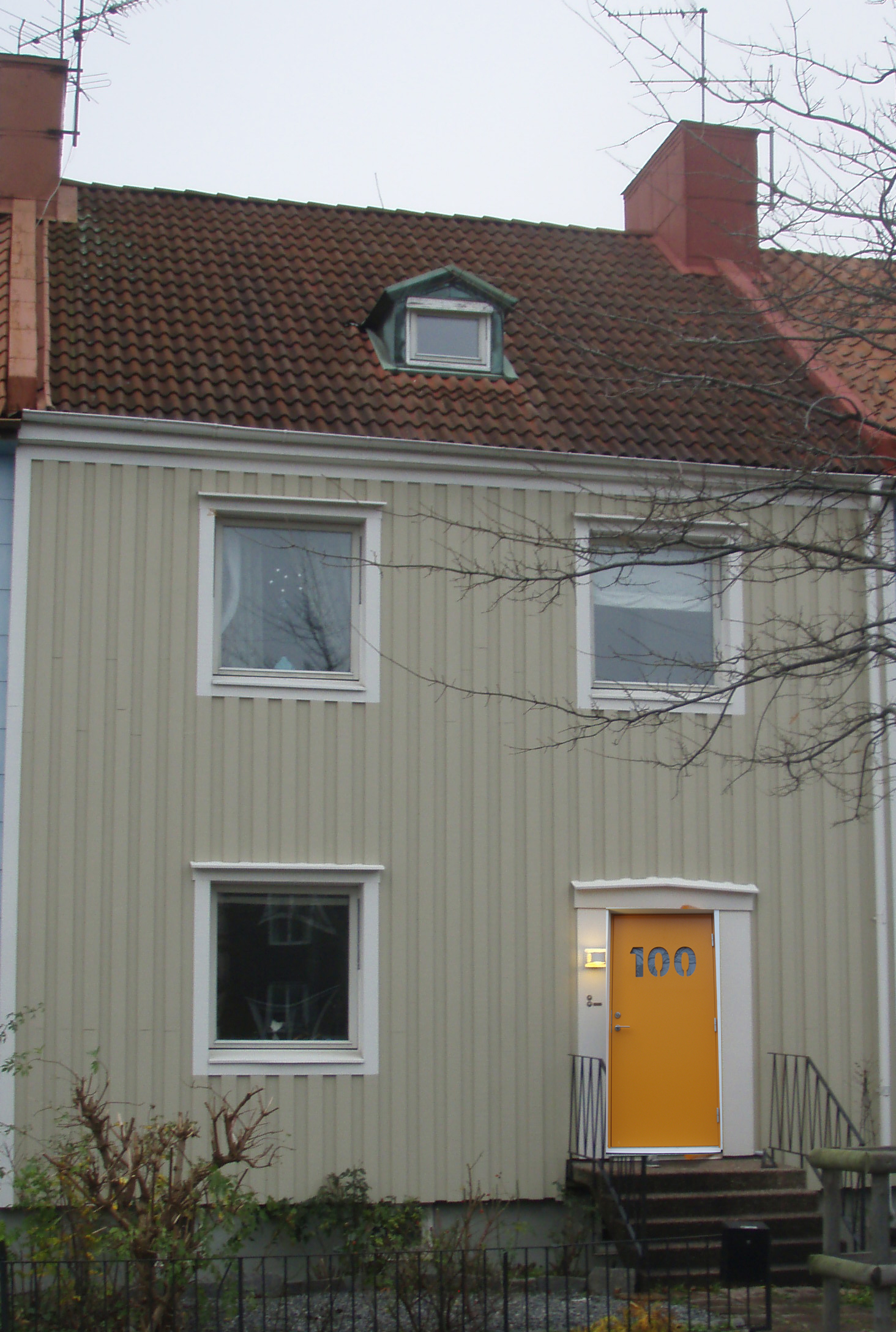 Jag ville testa om orange passar på alla hus så jag fotograferade helt enkelt några omkringliggande hus för att testa hur de skulle se ut med orange dörrar: