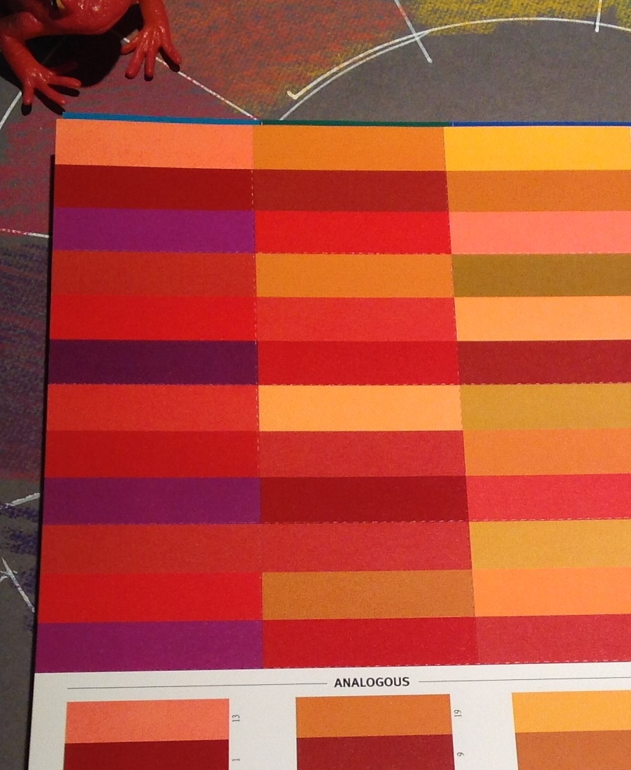 Rött och orange ligger nära varandra, särskilt med den rödare dörren, ex B4, det är som att kontrasten inte blir intressant, det blir liksom inget av det, då är det bättre med den gulare dörren, A4.