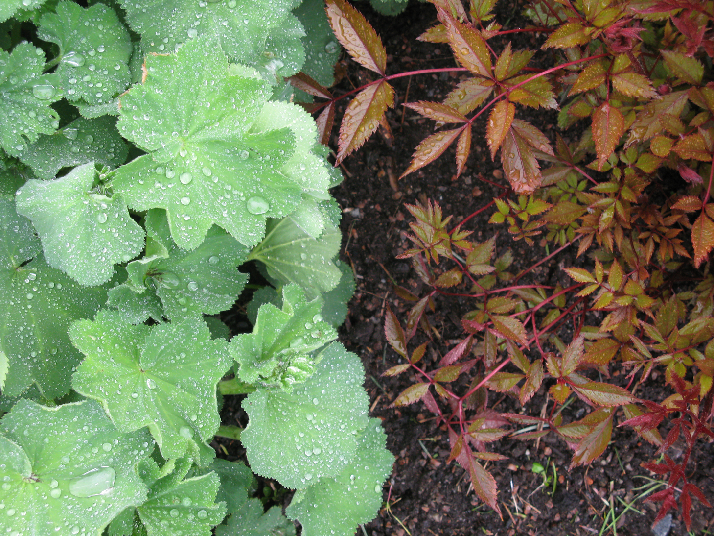 Varma och kalla färger i en och samma art. Daggkåpa & Astilbe. Foto: N. Nilsson.