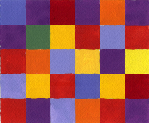 Då Albers inte tydligt berättar hur man går till väga för att göra denna övning har jag fått tolka hans text och utifrån den göra mina experiment. Detta var då en övning i mellanfärger och den får avsluta vår temamånad om varma färger.