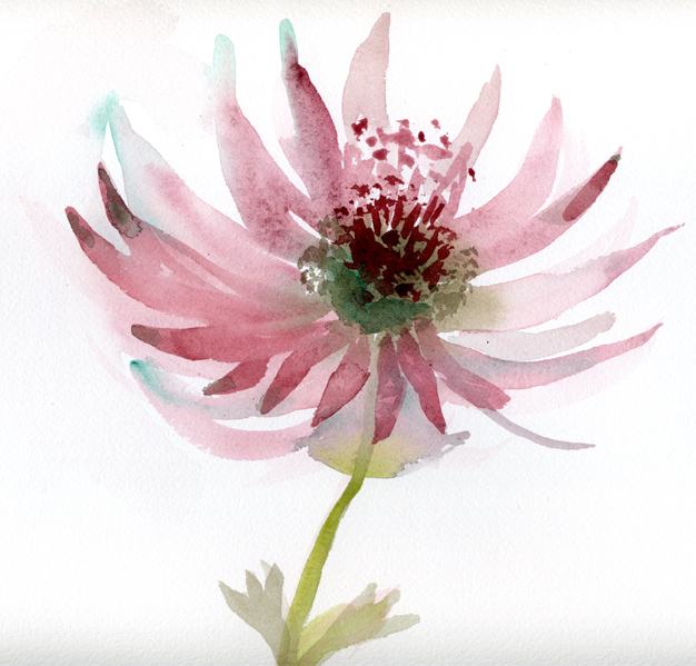 Fig. 2. ”Stjärnflocka” (Astrantia major ’ Roma’). Akvarell (beskuren) 2014. N. Nilsson.