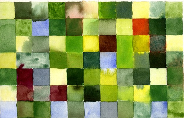 Komposition i grönt. Akvarell 20×29 cm. N. Nilsson.