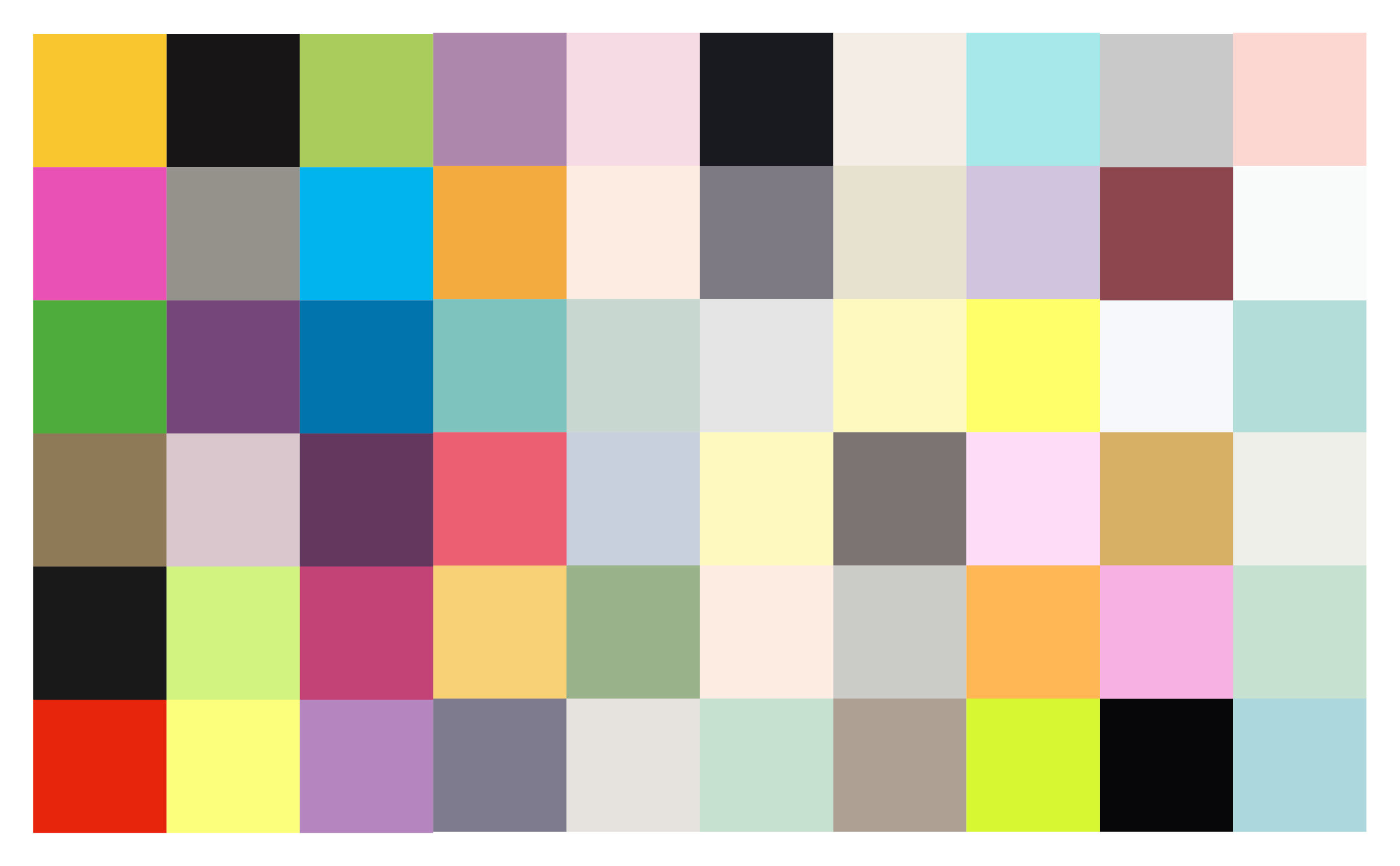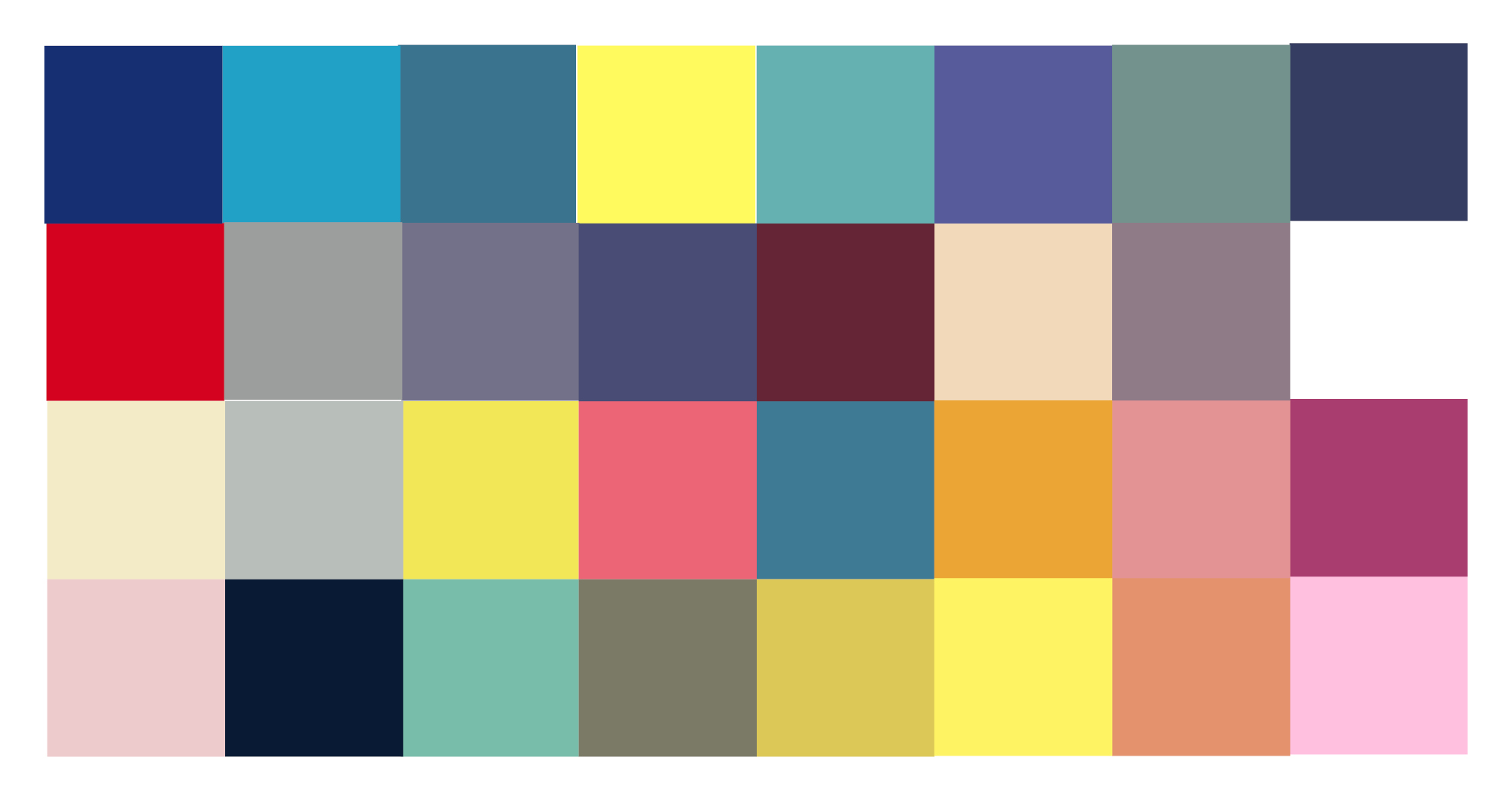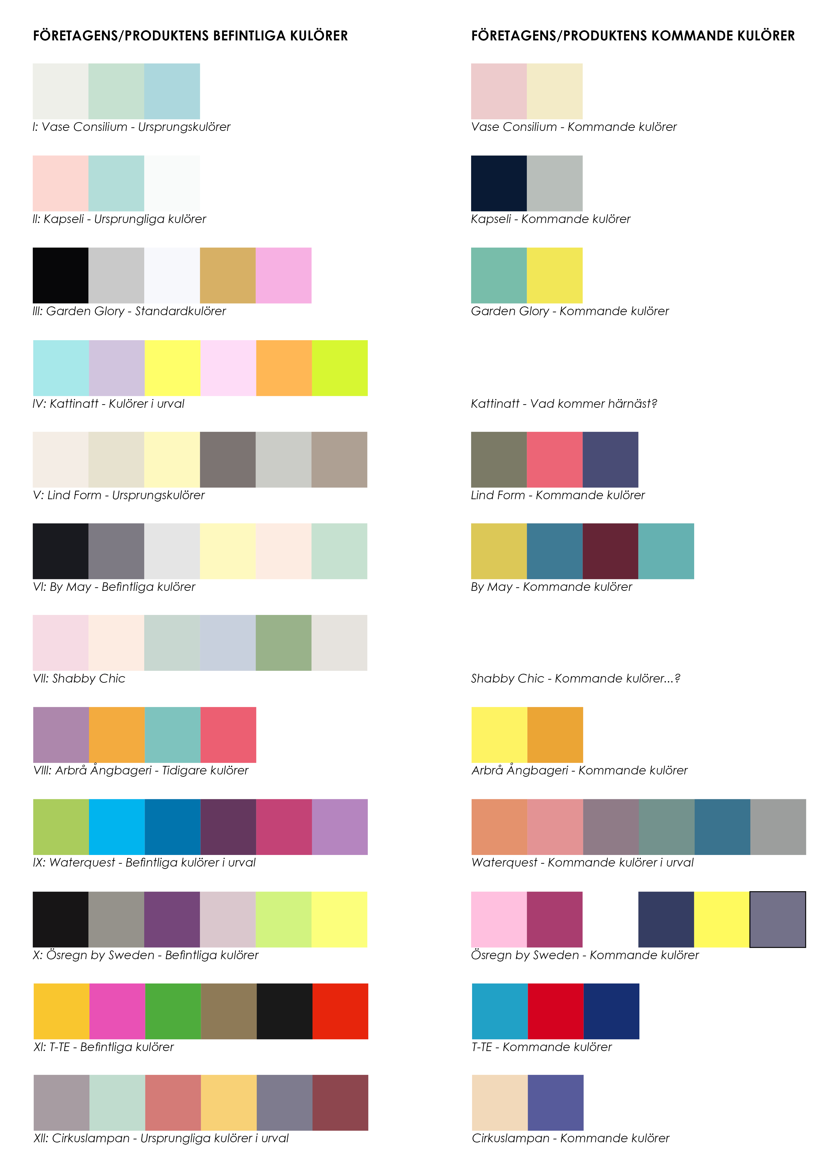 Ett färgschema med mässans kulörer utvalda genom Navets produktfärger.