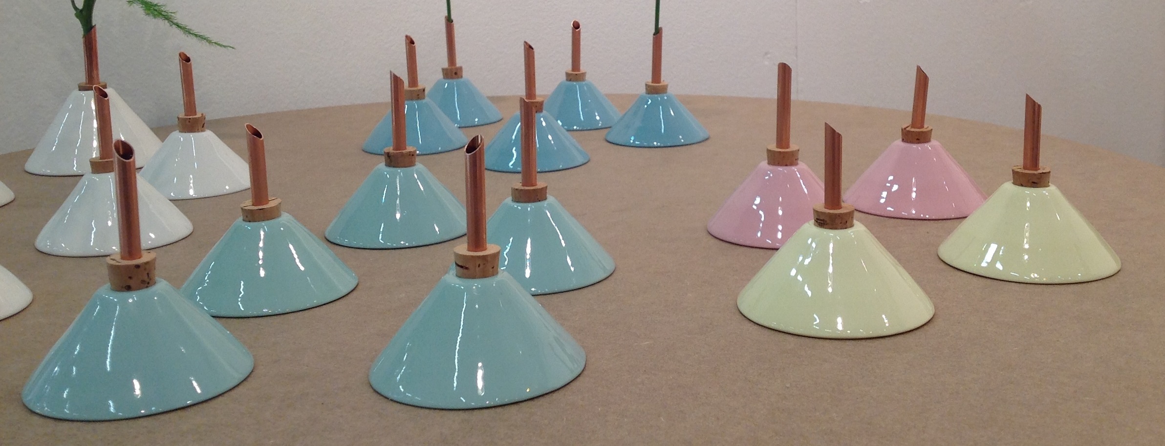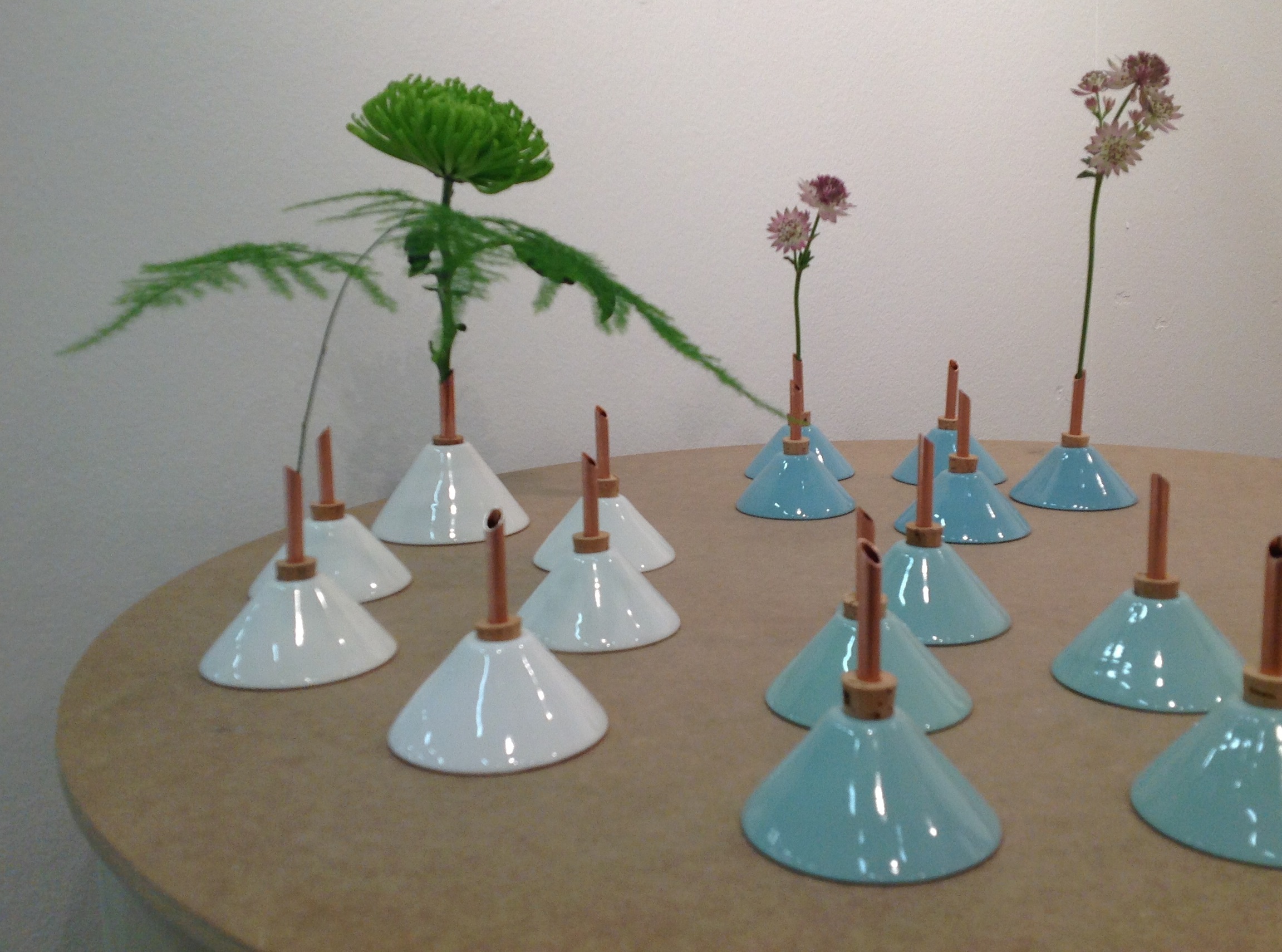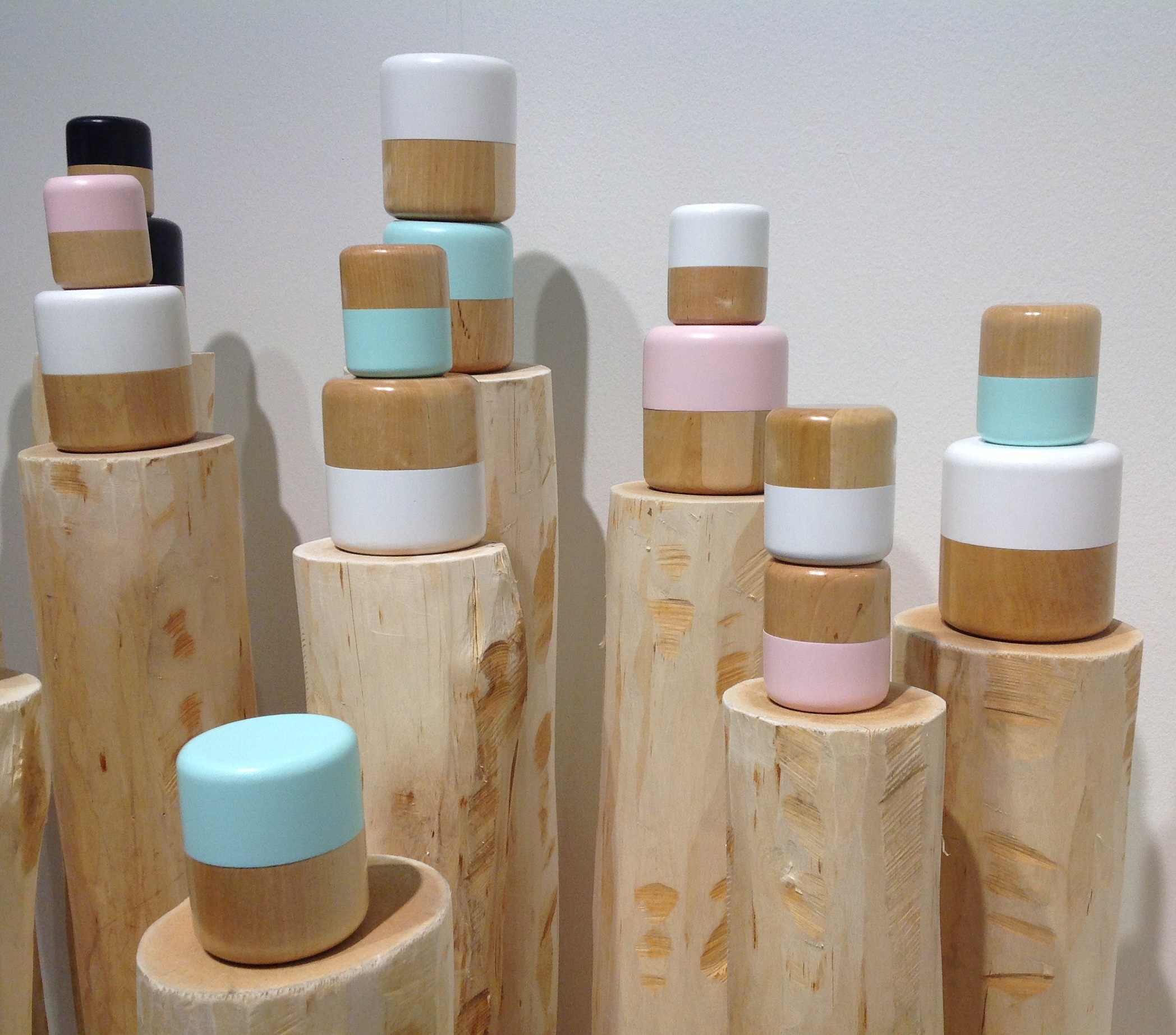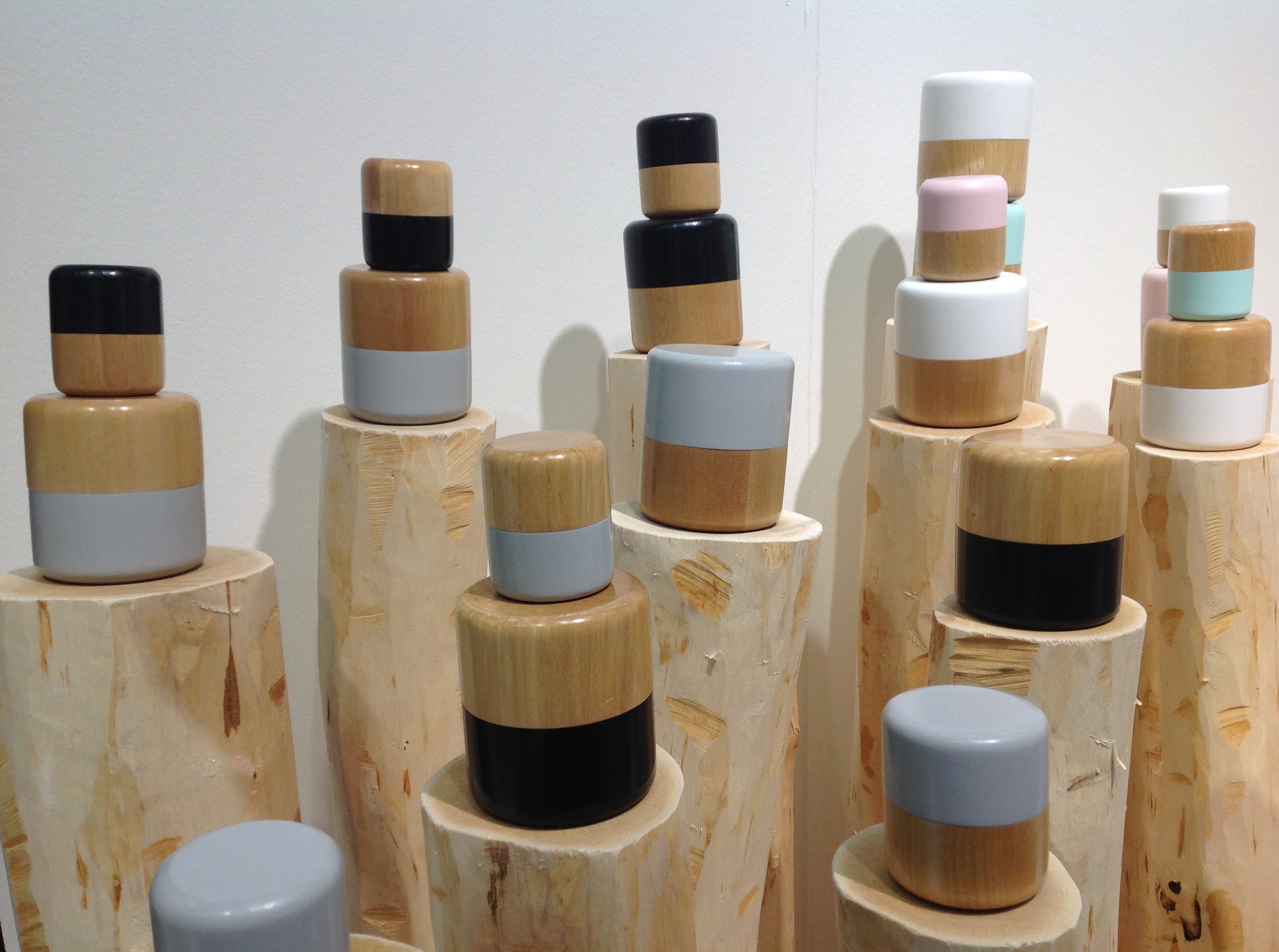 Här är några av Freemovers ljusstakar som går i gröna och turkos toner, med den kontrasterande syrenlila som vi sett dykt upp på många ställen på mässan.