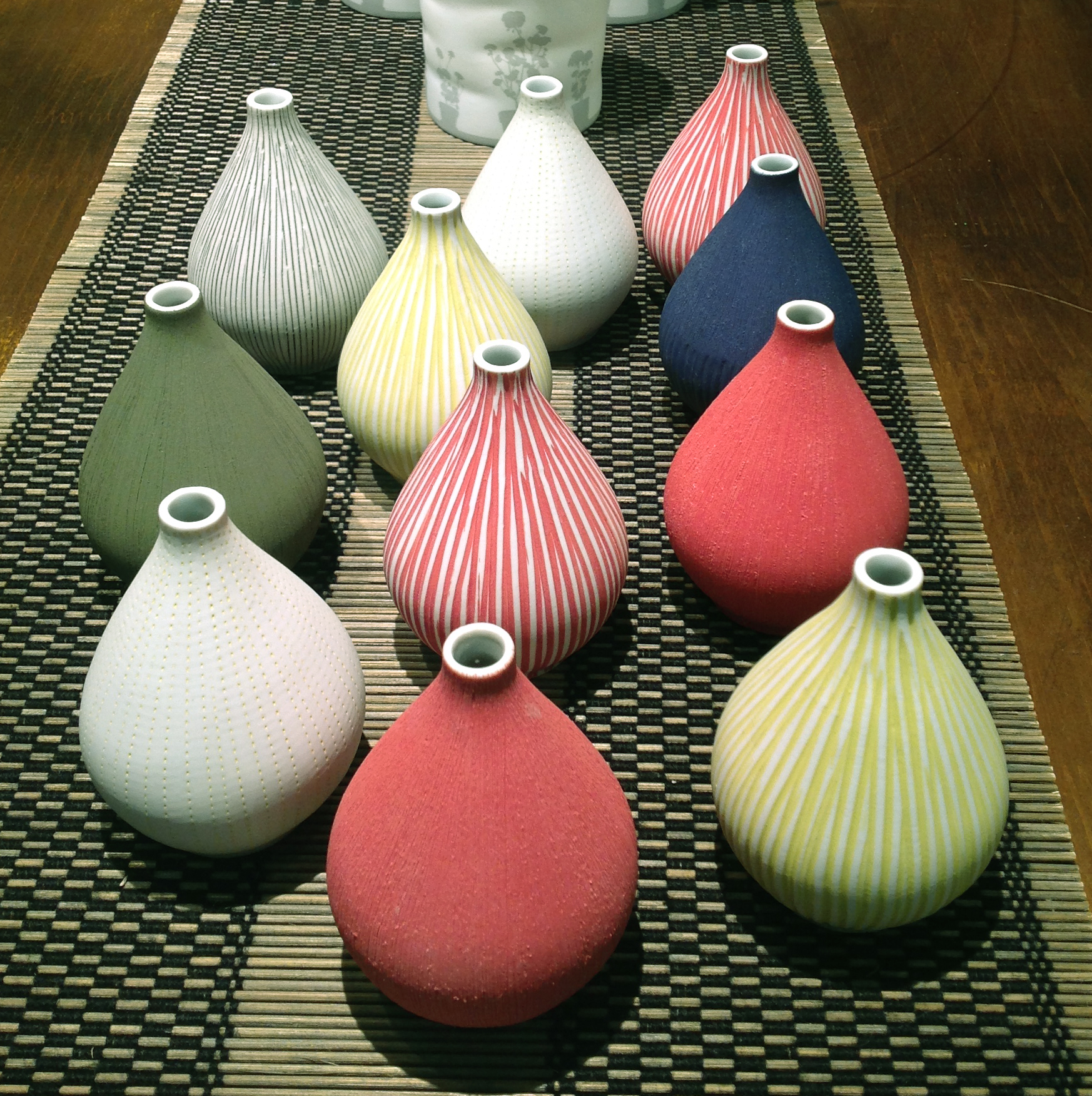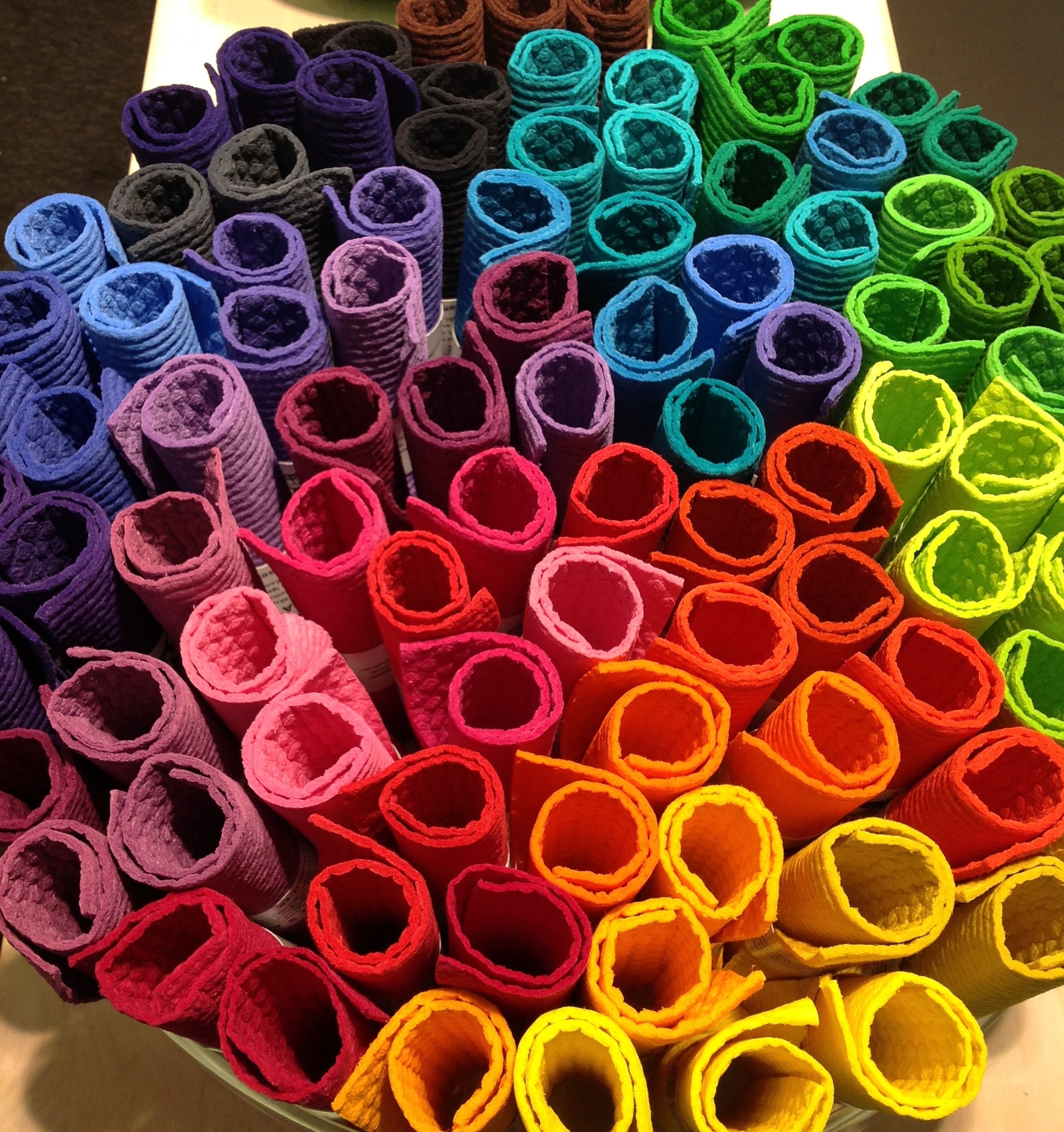 Uppradade efter färgfamiljer och ibland med komplementkontrast bildas en lång färglad kavalkad av ljusstakar. 44 kulörer gör att vi alla kan hitta favoriter och kombinationer i det oändliga. För många räcker det med grå och svart men vi är ju några som tycker kulör är häftigt. Jag vill ha alla!