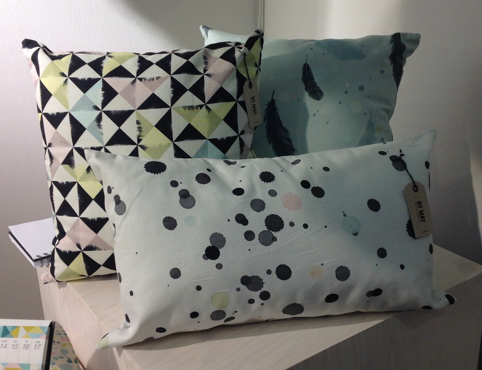Dynor för hundar är inte det jag brukar titta på när jag är ute på tur men tyget i dessa dynor från Woof är vackert och väl genomfört både mönster- och färgmässigt.