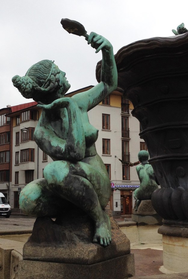 Yngling med grönt hår. Tillfälligheter bygger färgsammanhang! Hårfärgen har kontakt med blomsterarrangemangets gulgröna liksom den blåaktigt rosa affischen på kiosken knyter an färgmässigt till blommorna i urnorna. Foto N. Nilsson.