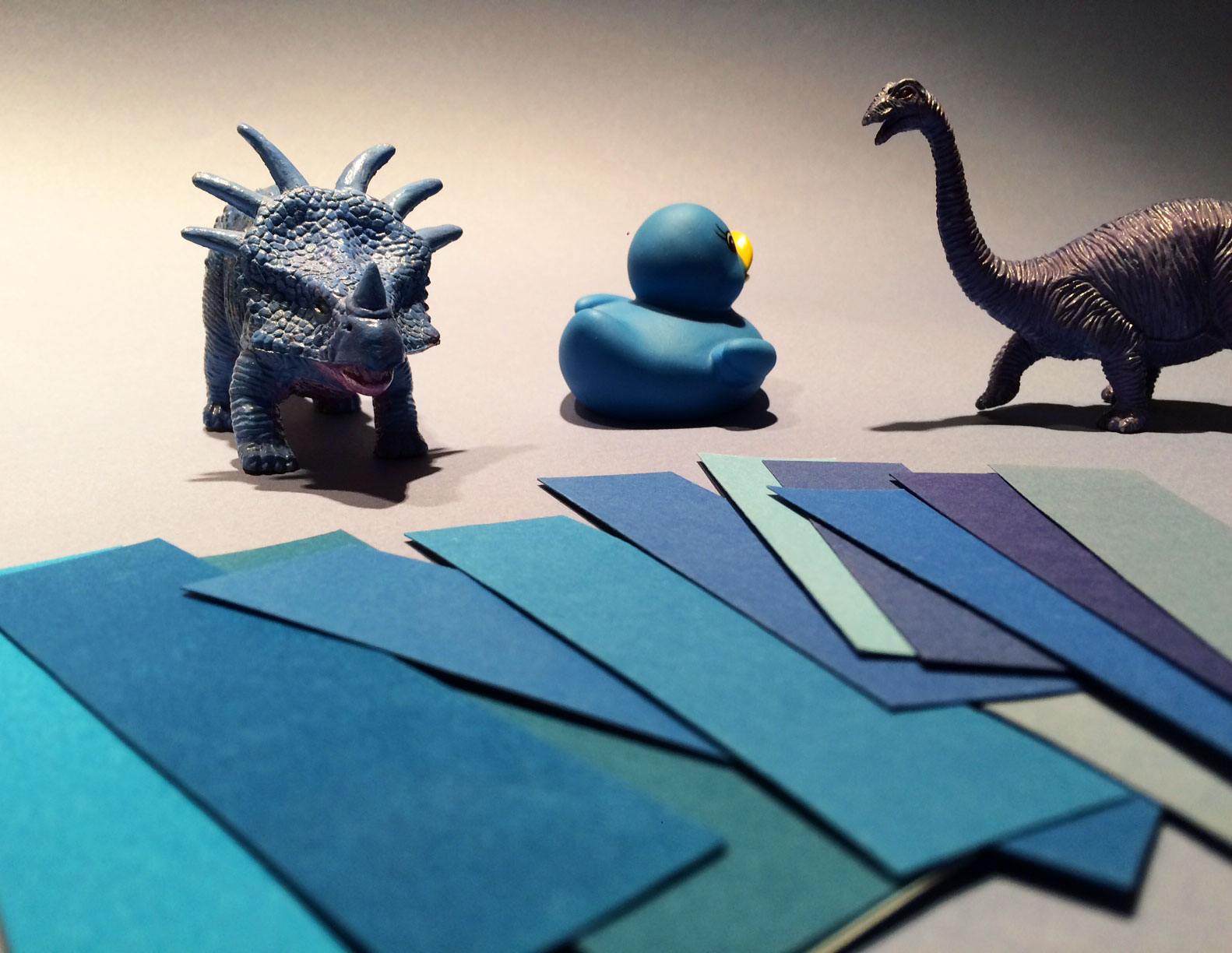 För att kunna undersöka blått i förhållande till andra kiulörer började jag med att försöka finna en förhållandevis neutral blå bland alla mina blå pappersprover.