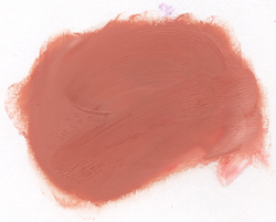 Överst t h. Rött (Beckers kadmiumröd) blandad med svart och vitt. Jag ser kulören som en relativt ren och ogrumlad färg, men, vars intensitet är låg i förhållande till primärfärgen röd. Är kulören fadd? Enligt min syn – nej. Det hade fordrats mer inblandning av svart för att få den mer grumlig. Den hade då blivit gråaktig.