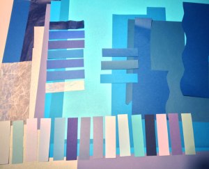 Pappersmontage, blått mot brunt. (Färgerna är något korrigerade i datorn…)