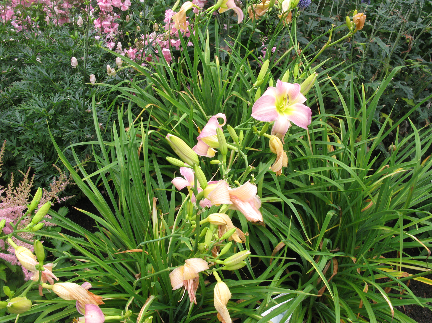 Stefan framför pallar med blommor på Botaniska trädgården i Göteborg. De rosa artlapparna i blomkrukorna framträder tillsammans med Stefans rosa skor och mörkt rosa skjorta, allt mot en grön bakgrund. Foto E-K