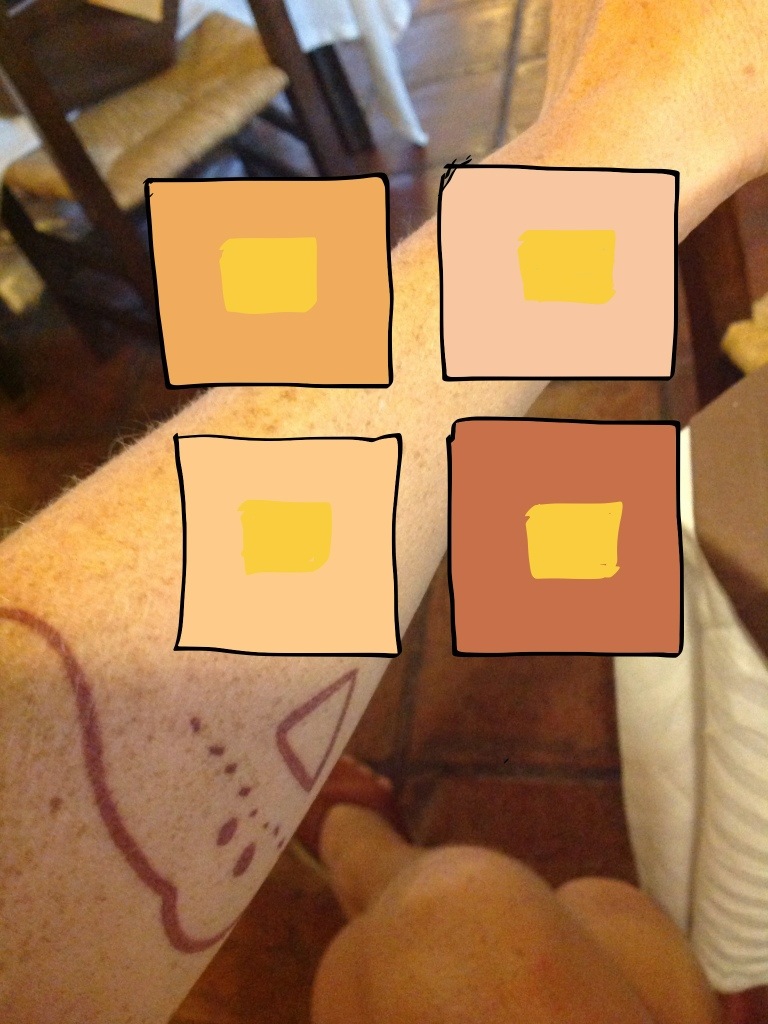 Att arbeta med rutor i färgscheman är bra. Det kan i andra sammanhang vara svårt att studera färger utan att samtidigt förhålla sig till formen. När jag arbetar med rutor slipper jag distraktion från formen. Därför inleder jag min undersökning med att arbeta med rutor av olika slag.