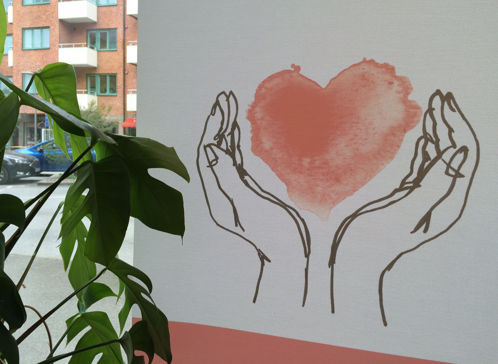 Jag kommer in i en stor hall, med fönster åt två håll, både ut mot Karl Johansgatan och in mot Kusttorget. Här finns ett tidningsställ, en tamburmajor att hänga sin jacka på, en stol vid ett bord och en soffgrupp. Här finns en palm i en kruka bredvid en stor spegel med guldram. Det är som att 1800-talet möter 80-talet, lite som en blandning av min farmors hem och väntrummet på en vårdcentral. Rent form- och stilmässigt är det splittrat men mitt fokus är ju på färg och med färgen i fokus målas det upp en helt annan bild!