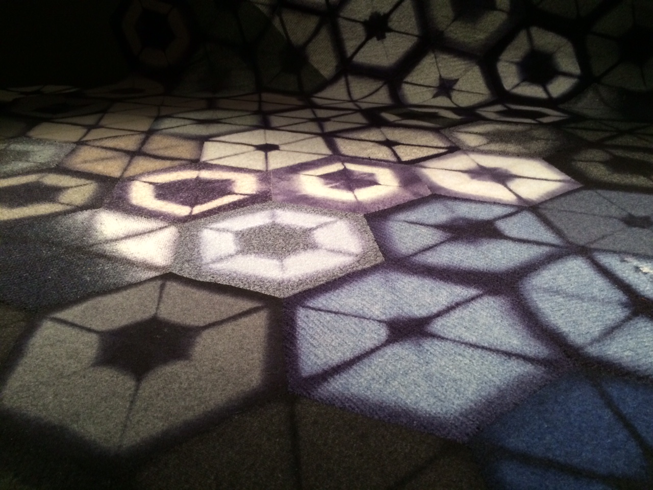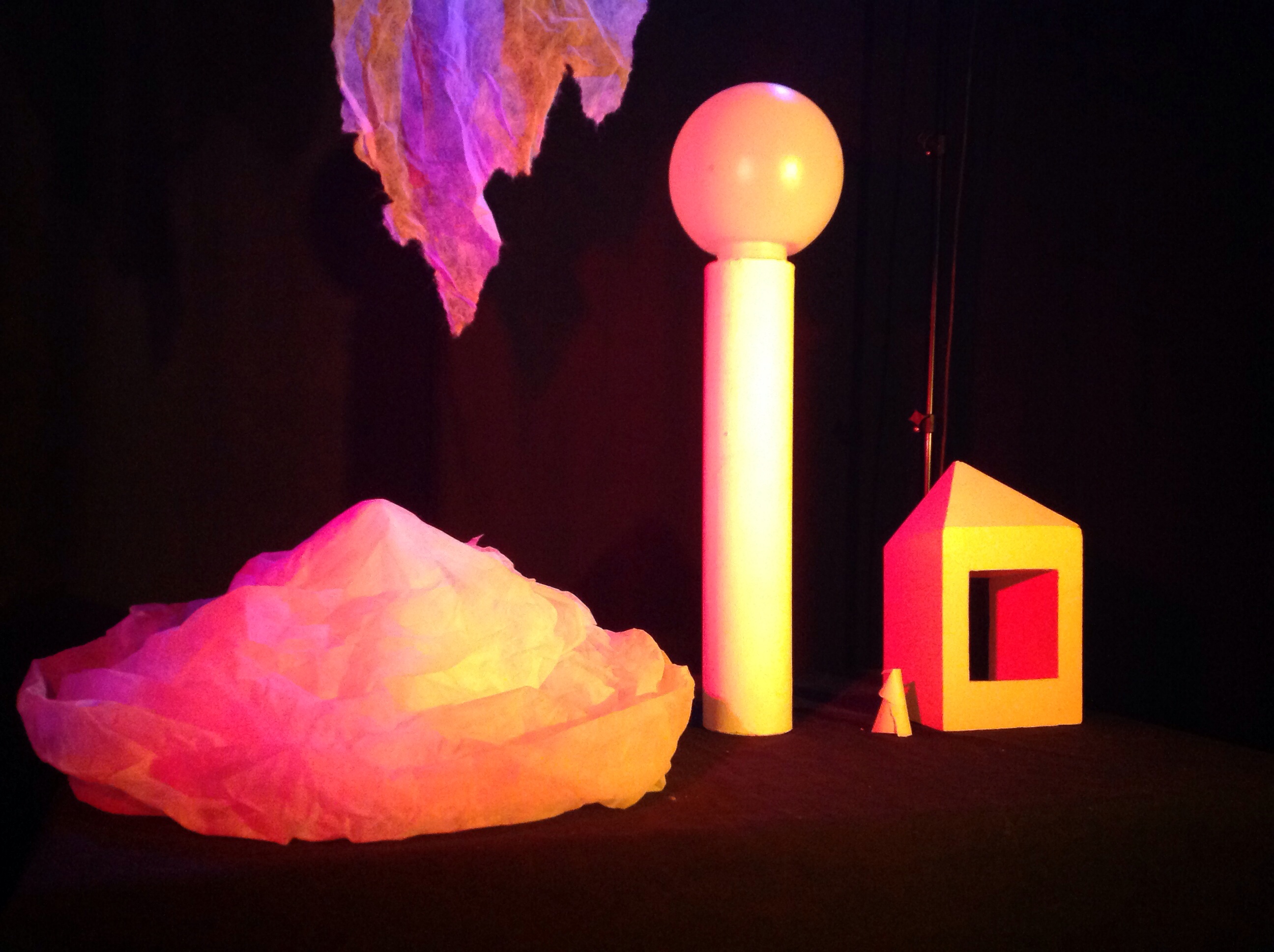 LjushetslikBild 3. Ljushetslika färger med fyra lampor; en cyan, en magenta, en gul och en blå. Foto Emma-Kara.