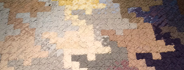 Detalj ur Vintergatan, på utställningen  Re Rag Rug, Textilmuseet i Borås. Foto E-K
