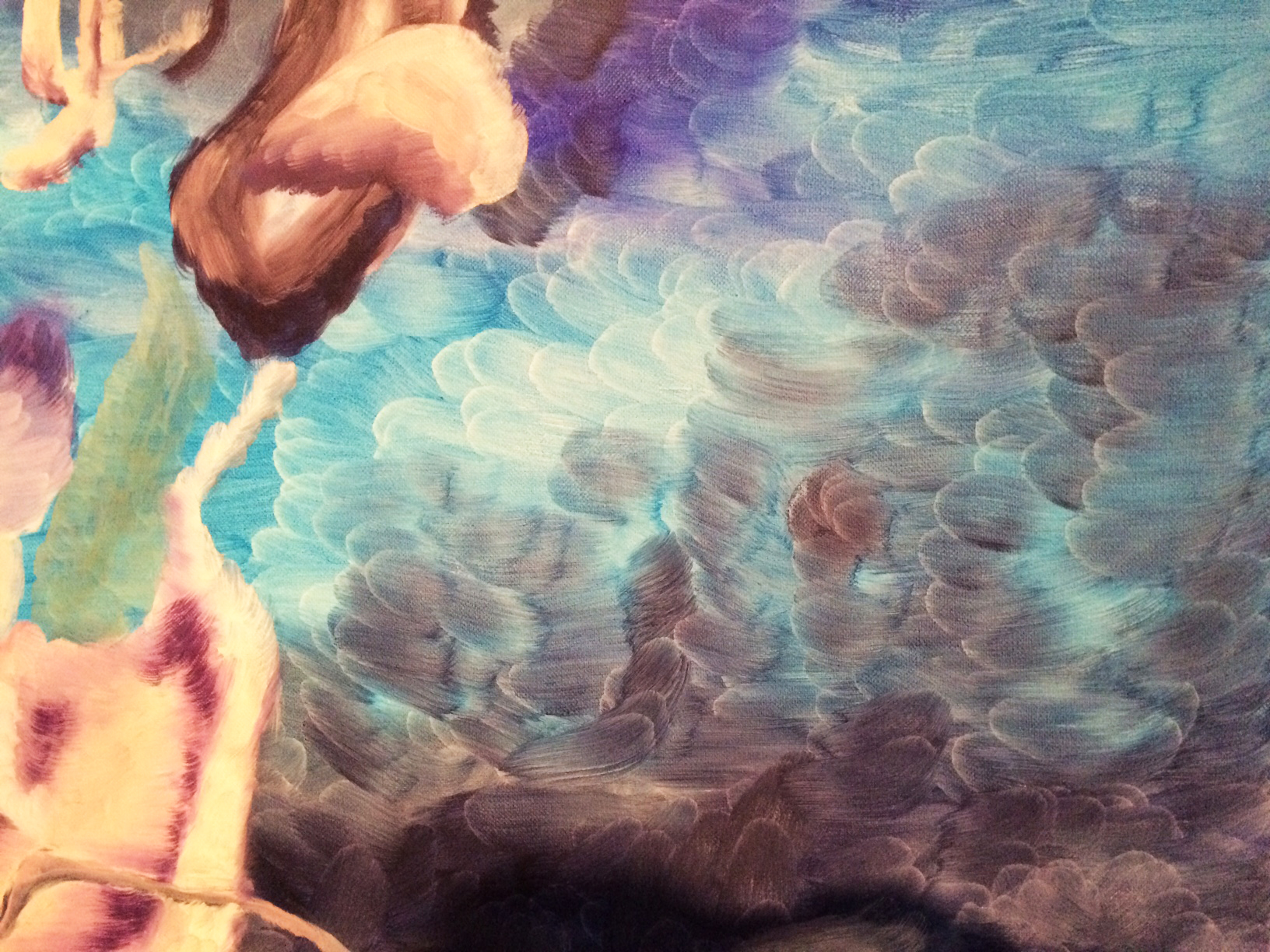 Målningarna på duk var enorma upp till tre gånger fyra meter. Tyvärr var ljussättningen av utställningen i det närmaste katastrofal så någon bra bild fick jag inte på en hel målning men väl fina detaljbilder.