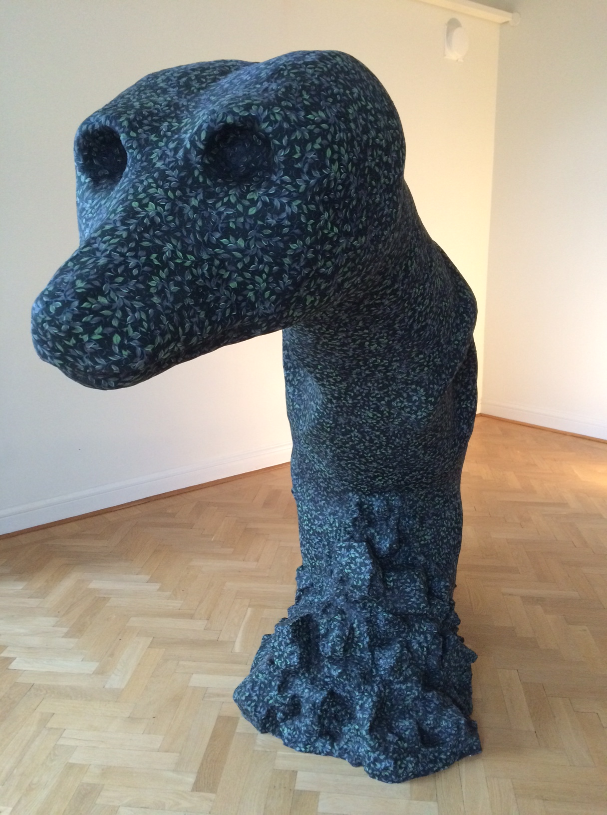 Hundar, urtidsdjur eller drakar, för mig är det oklart vad de föreställer men de fångar mitt intresse. Starka i formen och med ett kontrasterande småblommigt tygmönster i väl sammanhållna färgskalor. Min nyfikenhet väcks, vad är detta?