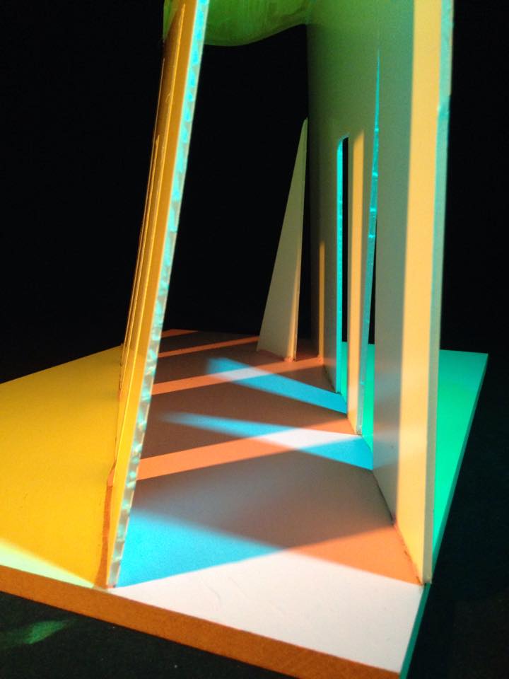 b. bygg en modell utifrån fotografiet med uppgift att sedan förändra rummet med hjälp av färg och ljus.
